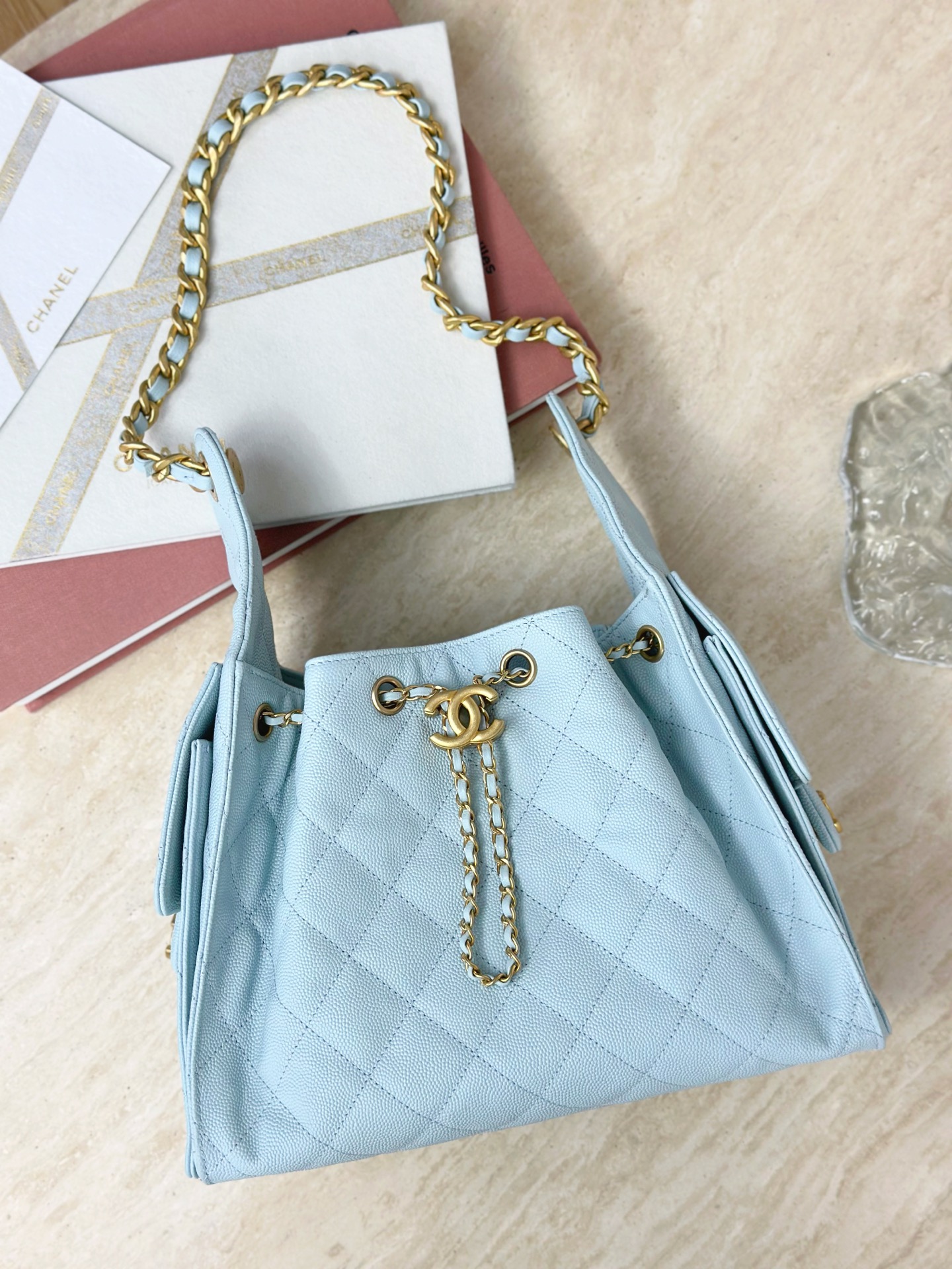 ✨拥抱奢华与优雅——立即拥有浅蓝色香奈儿 25 小包。