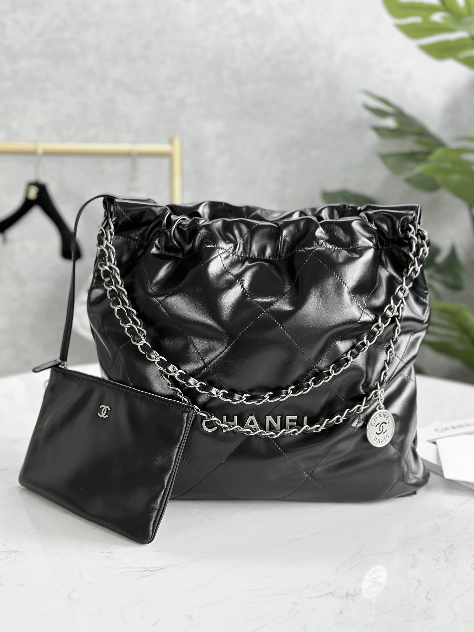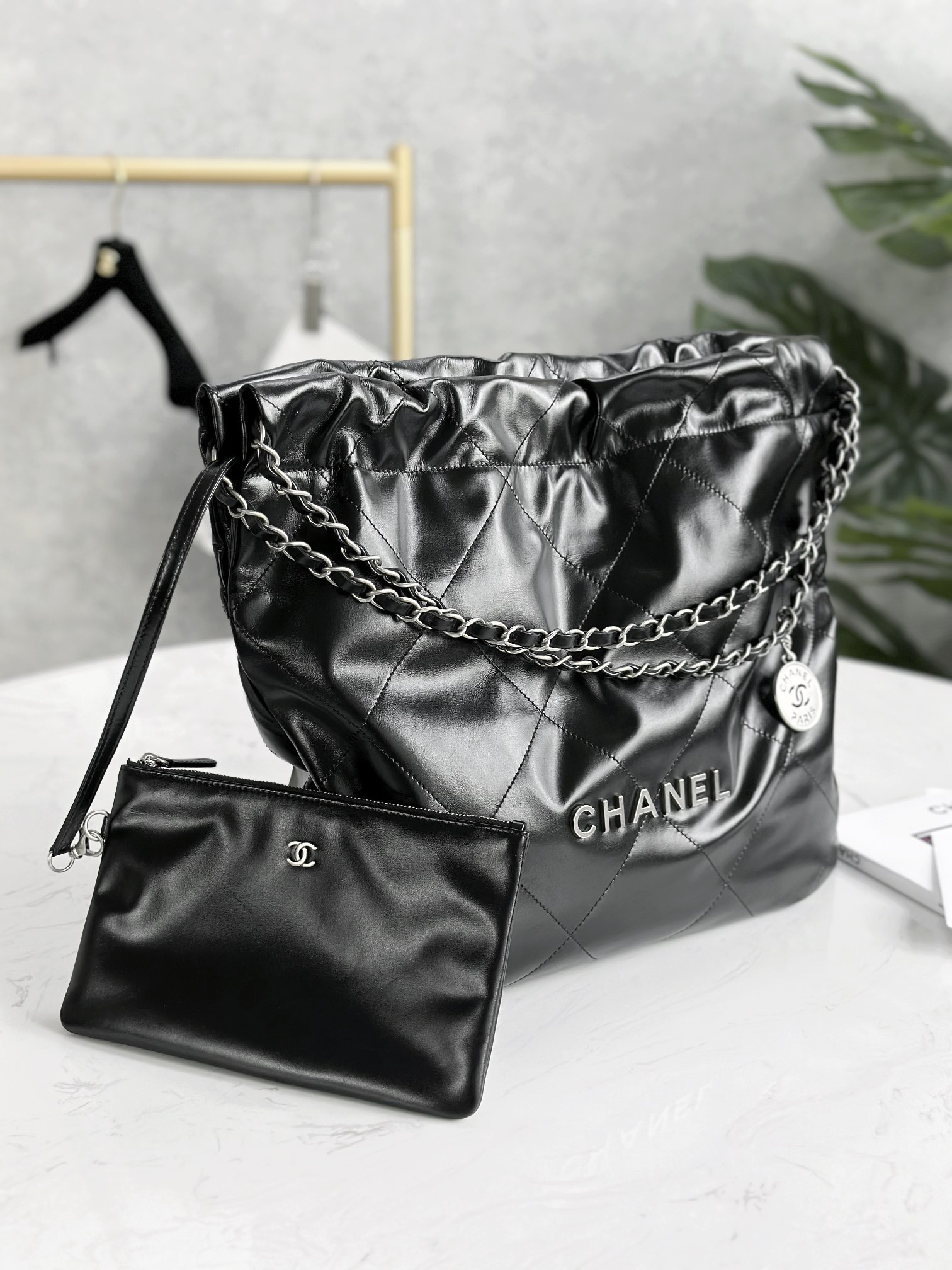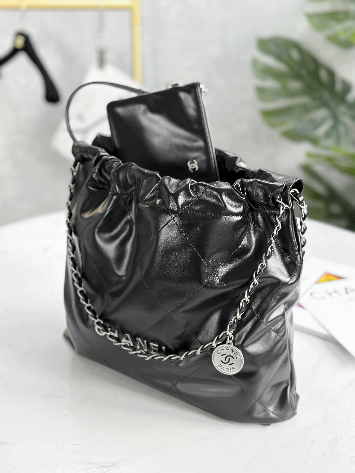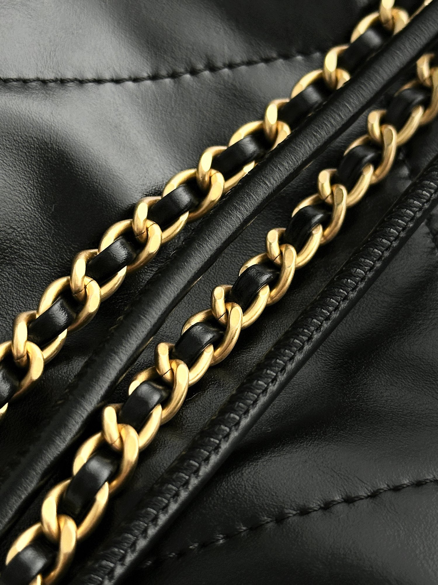 奢华与永恒风格的完美融合——黑金和黑银的经典 22bag 手提包。