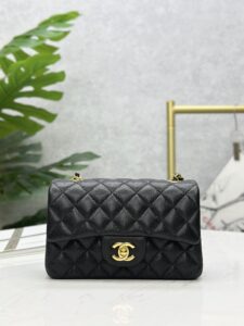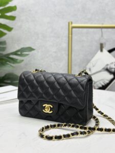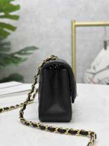 Classic MINI CF Black & Gold | Hass Caviar Calfskin Handbag | 12×20×6cm