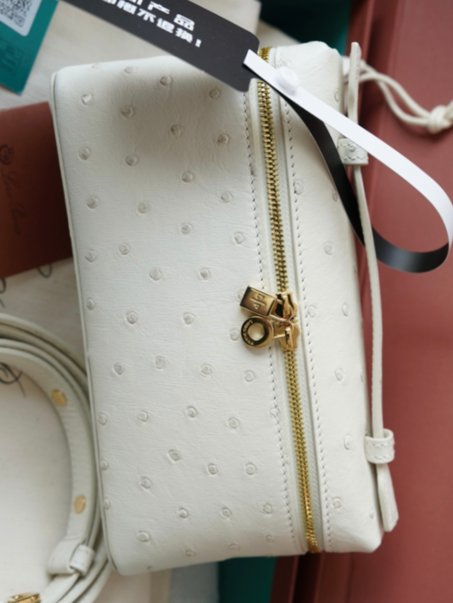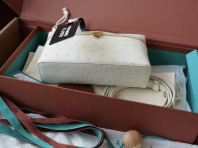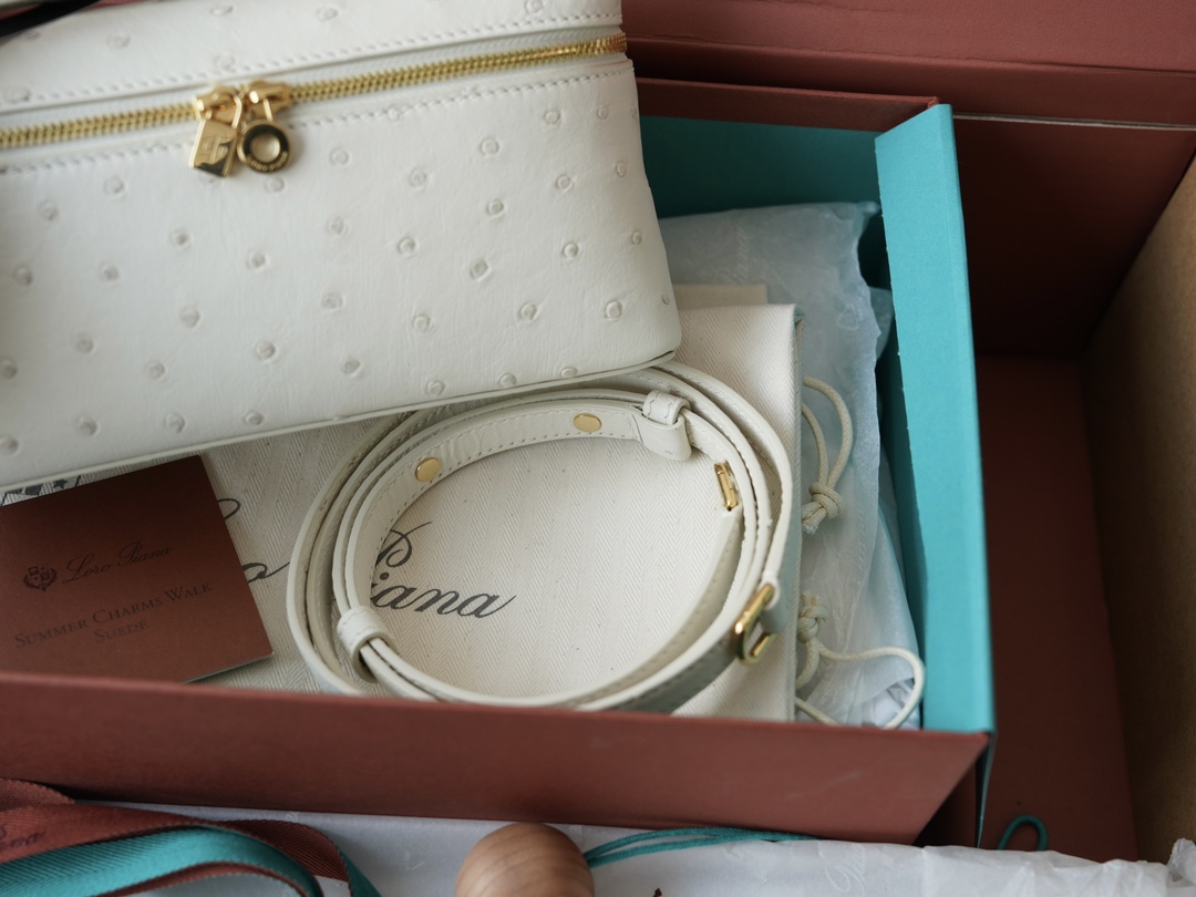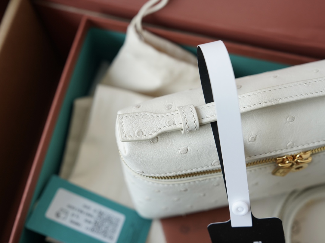 其 11 × 19 × 6.5 厘米的紧凑廓形在实用性和时尚性之间实现了优雅的平衡。额外的口袋功能增强了便利性,而鸵鸟皮自然独特的羽毛笔图案确保每件作品都是真正独一无二的。