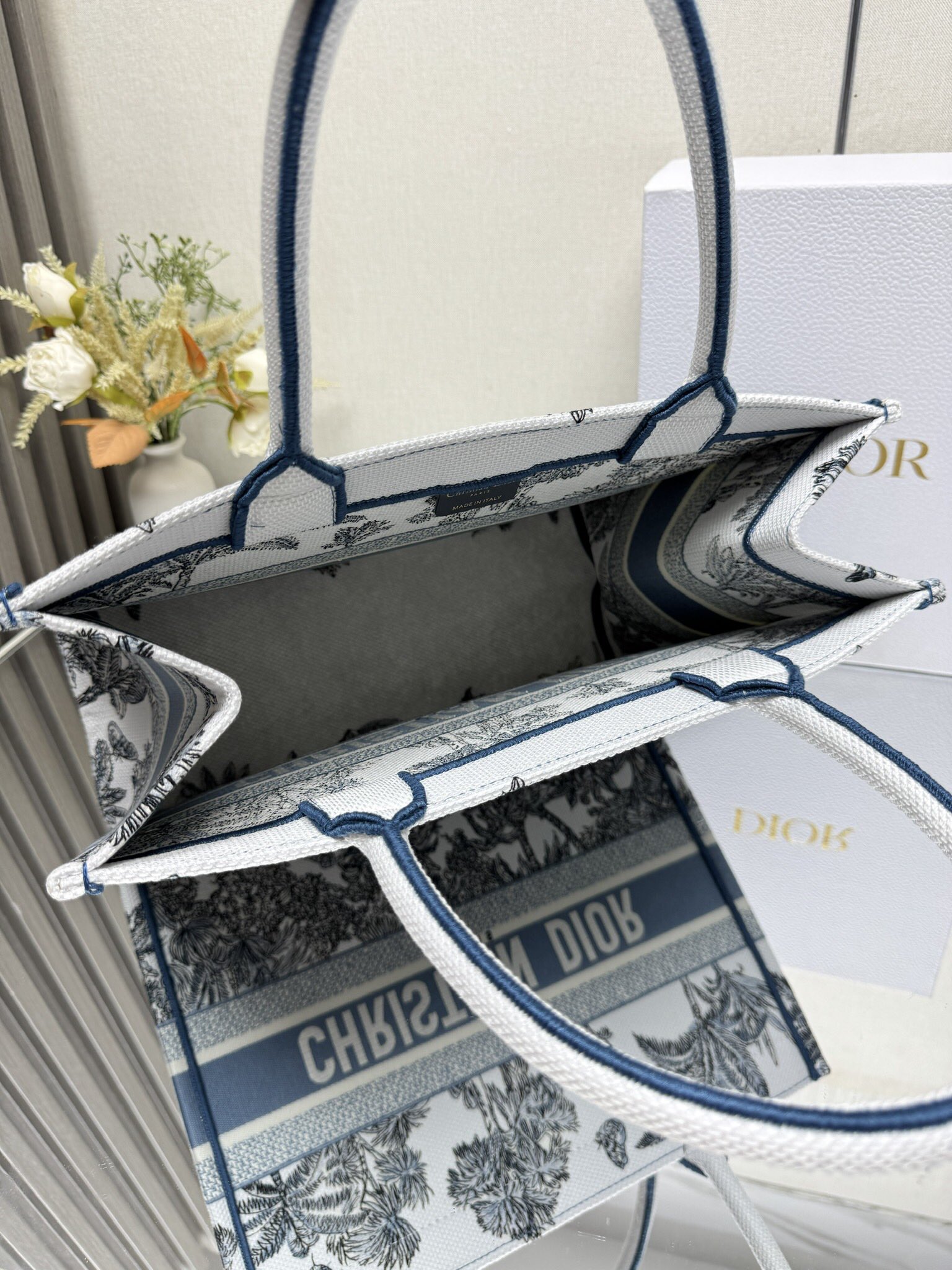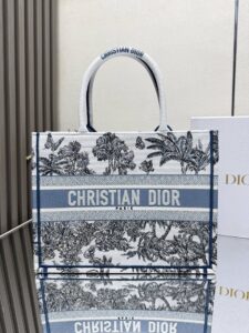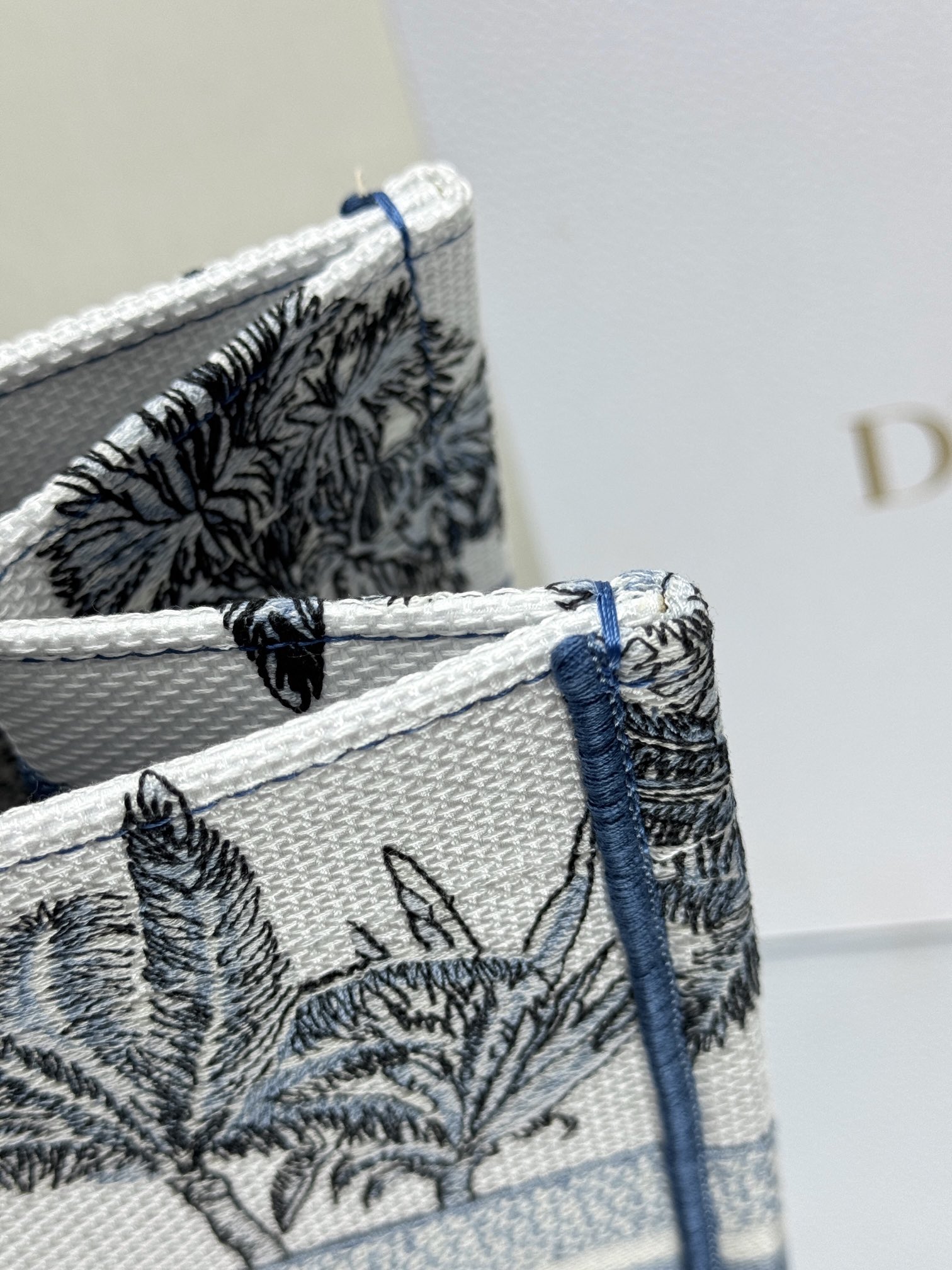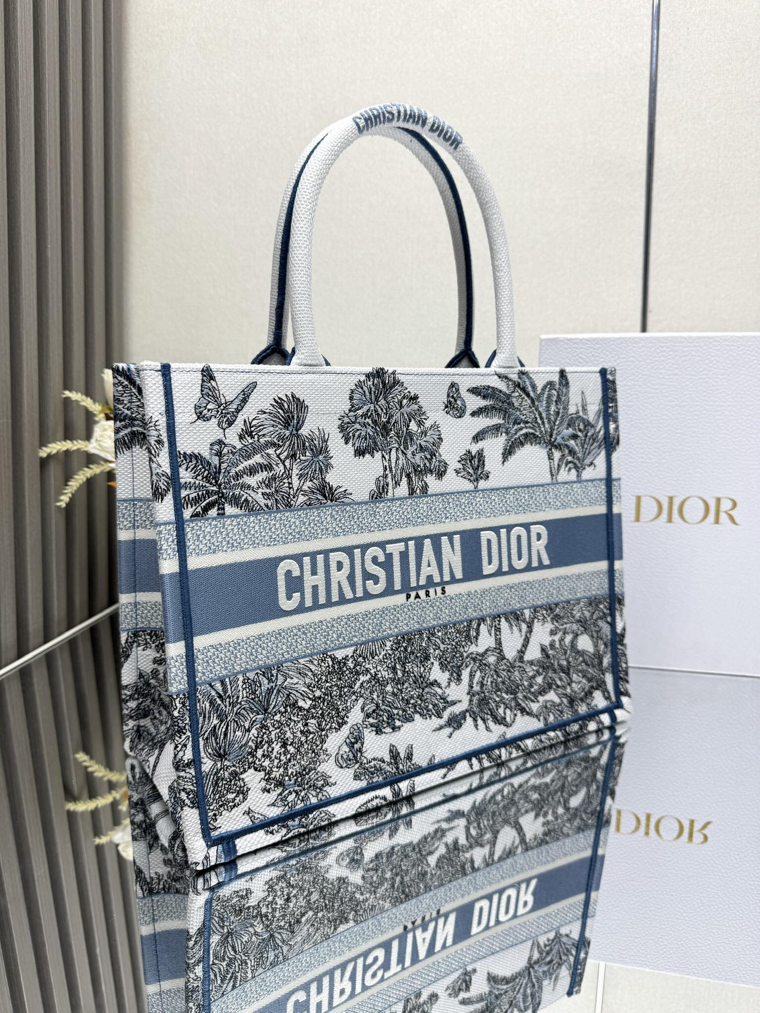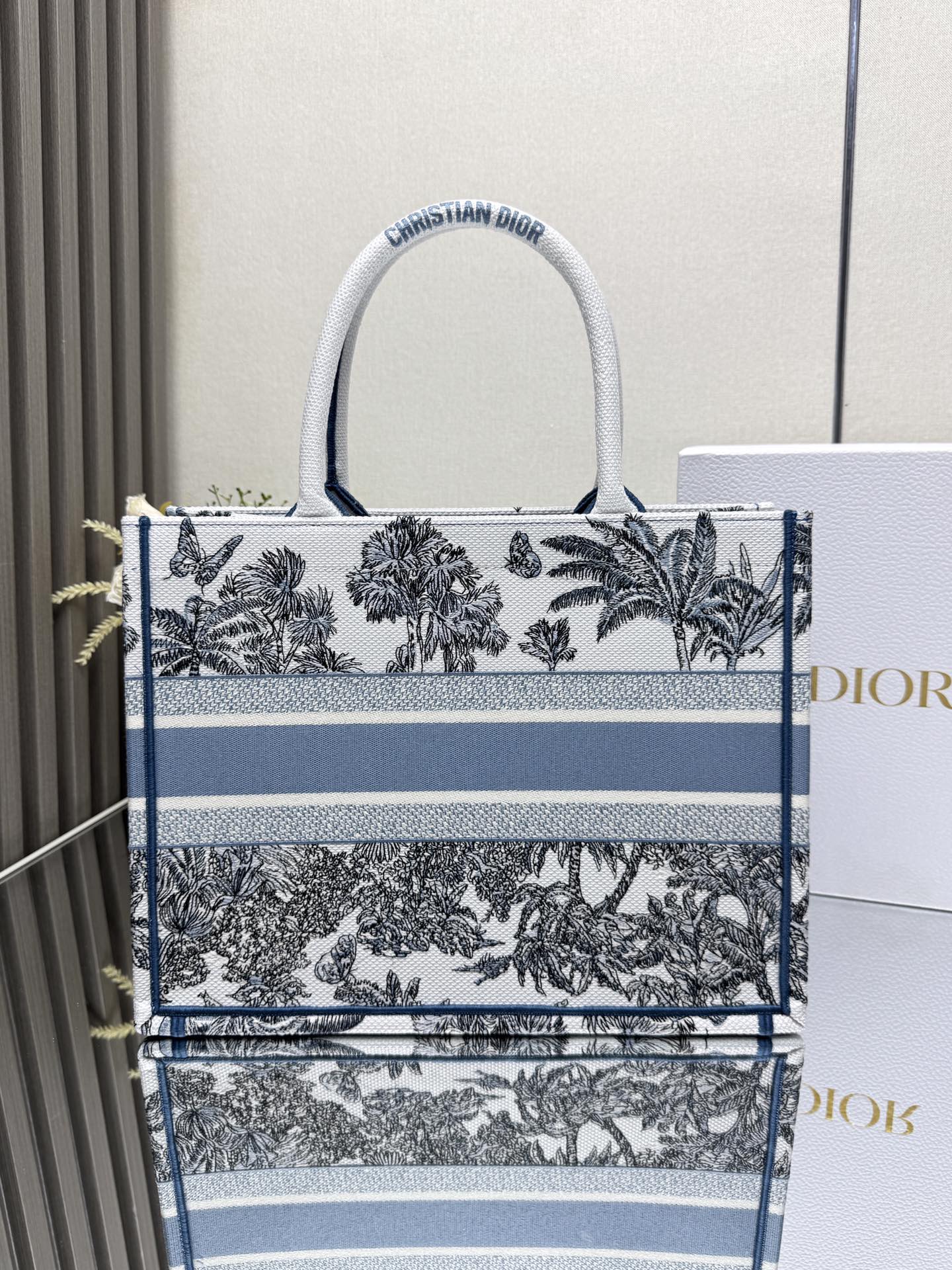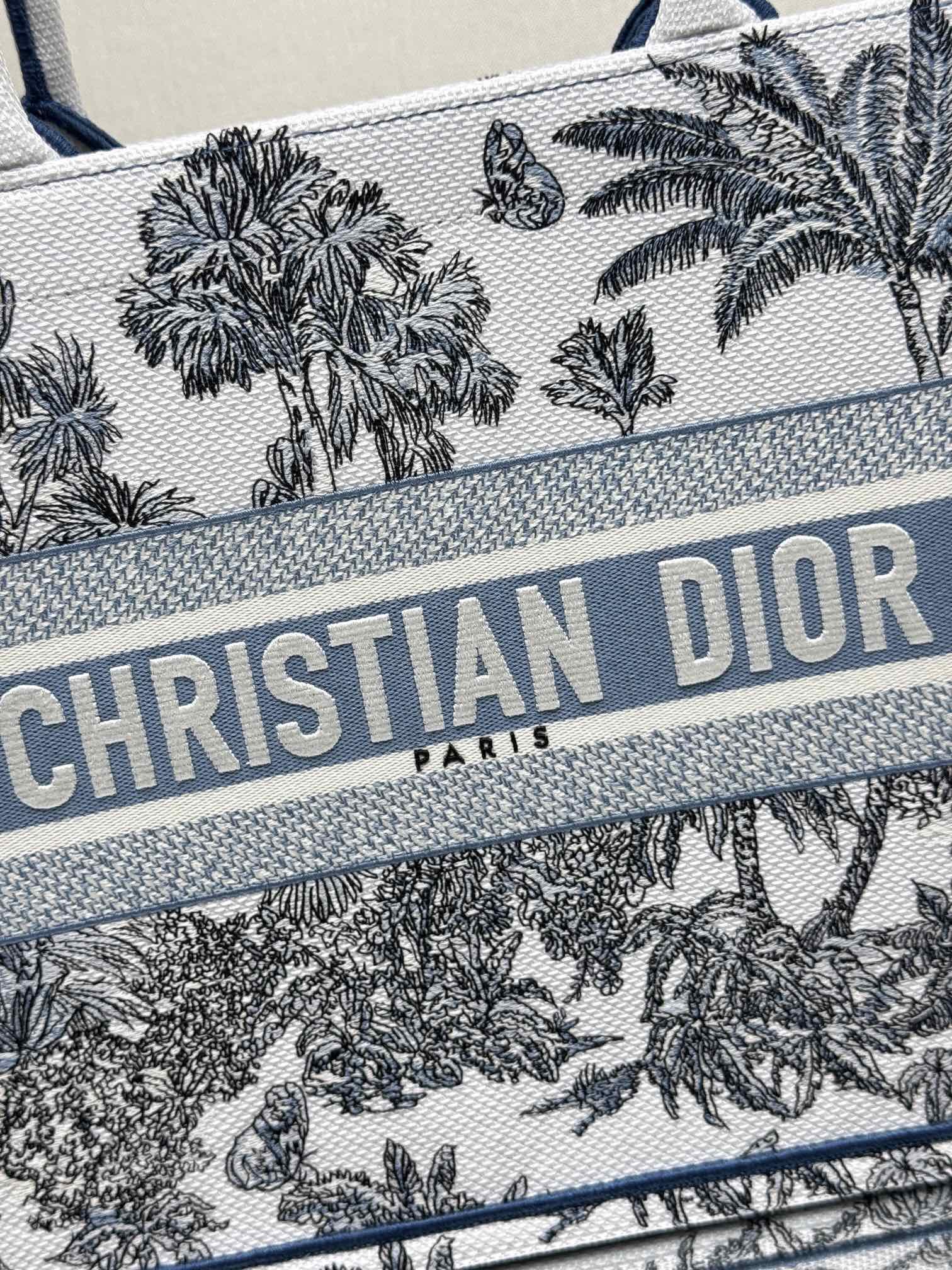 Medium Book Tote Bag – Bayadere & D-Stripes Embroidery, Palm Blue Edition (36cm)