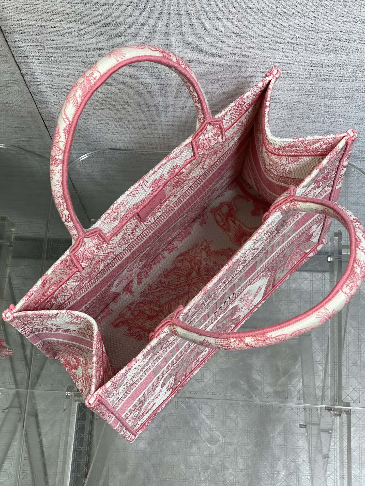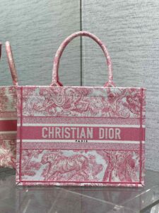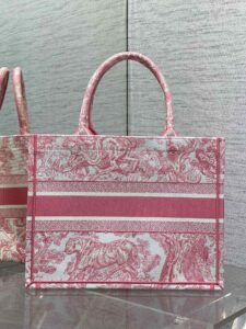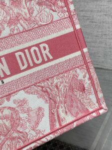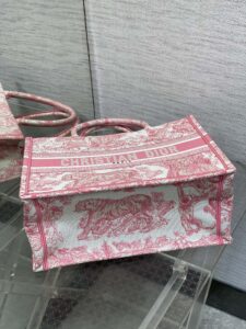 Dioriviera 版的中号书托特包是一款将永恒优雅与现代魅力融为一体的个性单品。采用精致的工艺设计,以精致的浅玫瑰色调展示了标志性的 Sauvage Toile de Jouy 刺绣,为经典图案带来了新鲜的诠释。