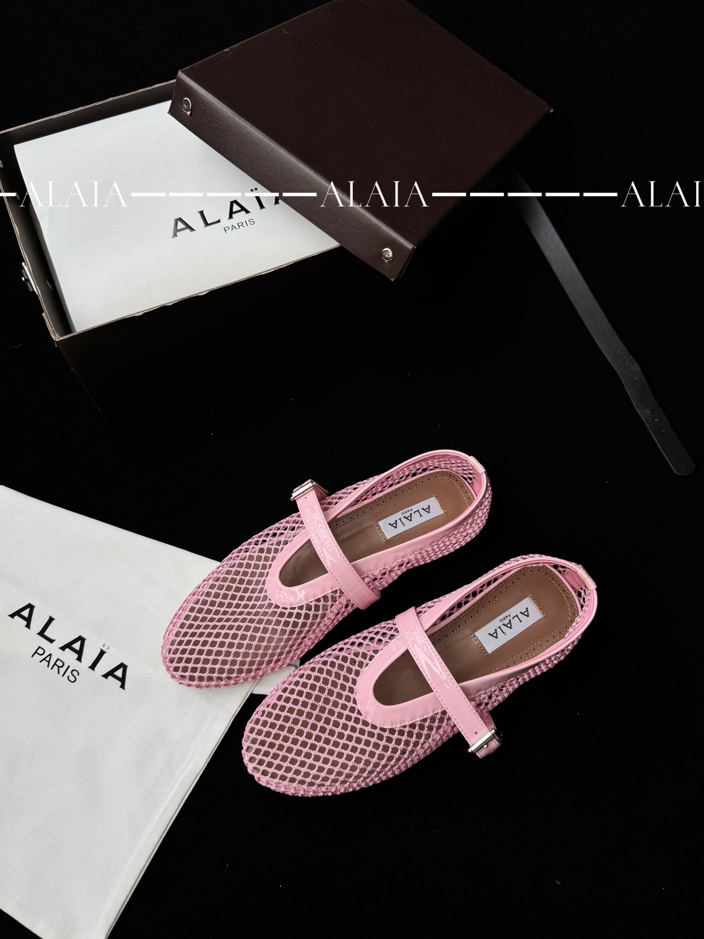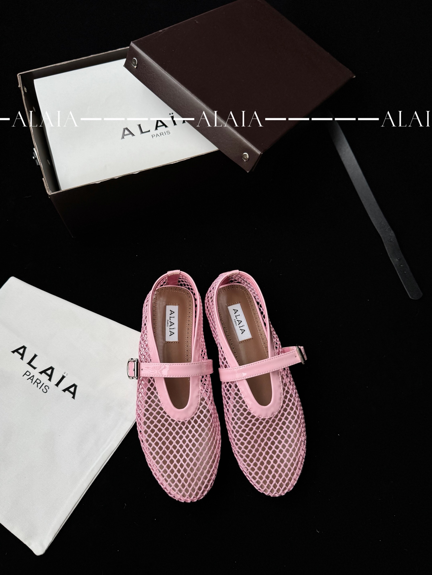 Pink Fishnet Ballet Flats | Lambskin Lining & Calfskin Trim