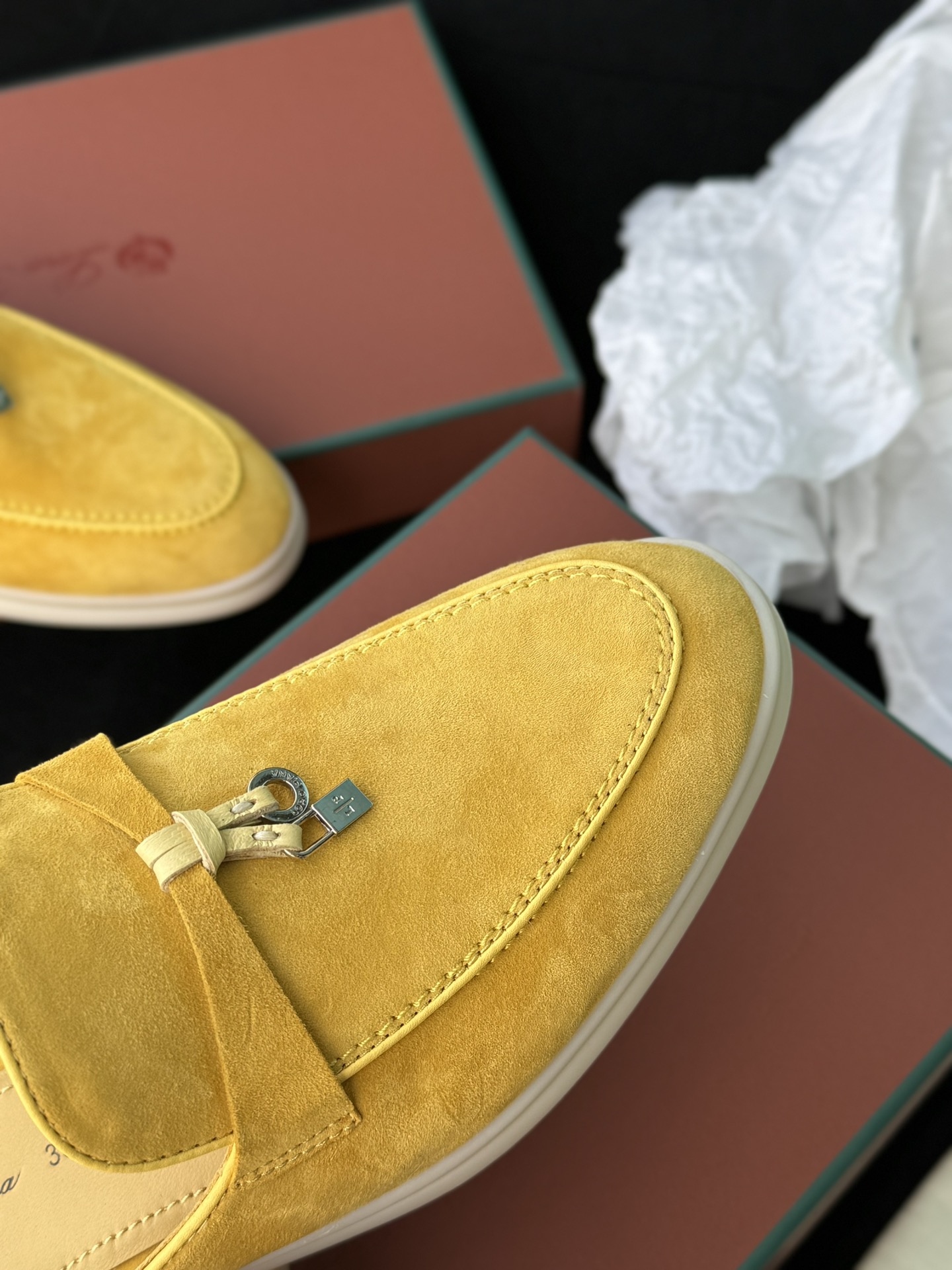 这些软皮鞋采用优质绒面革牛皮和小羊皮精心制作而成,既奢华又舒适。鲜艳的黄色为任何服装增添欢快的气息,非常适合白天活动和休闲郊游。这些软皮鞋的尺码从 36 到 41 不等,旨在为全天穿着提供舒适、完美的贴合感。