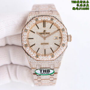 THB Royal Oak 15400 Full Diamond Watch – 41mm Iced Out Edition | Available in Gold, Silver, Rose Gold